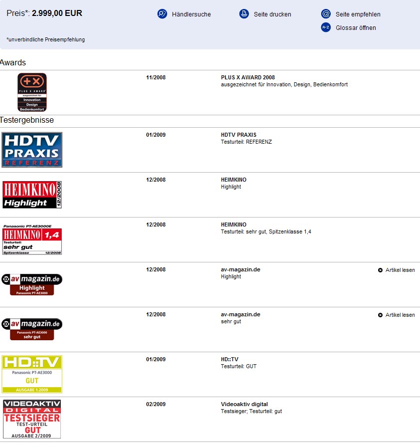 Der Projektor selbst hat in vielen Fachmagazinen beste Bewertungen bekommen, siehe Auflistung unten.