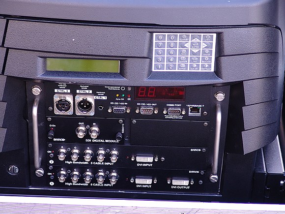 Die Lightengine des Barco SLM R12+ Performer ist staubgeschützt. Im Gegensatz zu normalen Projektoren, die meist bis nur ca. 35° Umgebungstemperatur einsetzbar sind, kann dieser Barco auch noch bei 40° C betrieben werden. Im Sommer bei der Übertragung von WM Spielen usw. können ein paar Grad mehr schon sehr wichtig sein.