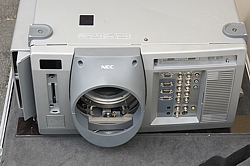 NEC XT5000. Hochprofessioneller 3 Chip DLP Projektor. Dieses Gerät ist für alle diejenigen Interessant welche höchste Ansprüche an die Farbqualität bzw. an die Farbtreue eines projizierten Bildergebnisses haben. Im Gegensatz zu normalen 1 Chip Projektoren mit rotierendem Farbrad können diese 3 Chip DLP Maschinen gerade im Bereich der Farben Gelb und Magenta eine deutlich höhere Farbreinheit aufweisen. Hauttöne und deren Facetten werden realistischer dargestellt. Überall wo beste Bildqualität gefordert wird werden überwiegend 3 Chip DLP´s eingesetzt, zumeist in Kombination (bis auf wenige Ausnahmen) mit XENON Licht. Normale Projektionslampen auf UHP Basis bzw. deren Derivate haben meist einen Überschussanteil im spektralem Grünbereich dieser dann aufwendig weggefiltert werden muss, welches allerdings einem verschlechterten Wirkungsgrad der Lichterzeugung nach sich zieht. XENON Licht liegt vom Farbspektrum her näher am natürlichen Tageslicht, Filterungsmaßnahmen usw. sind hier nicht im gleichen Umfang notwendig wie bei den Kurzbogenlampen auf UHE UHP Basis.