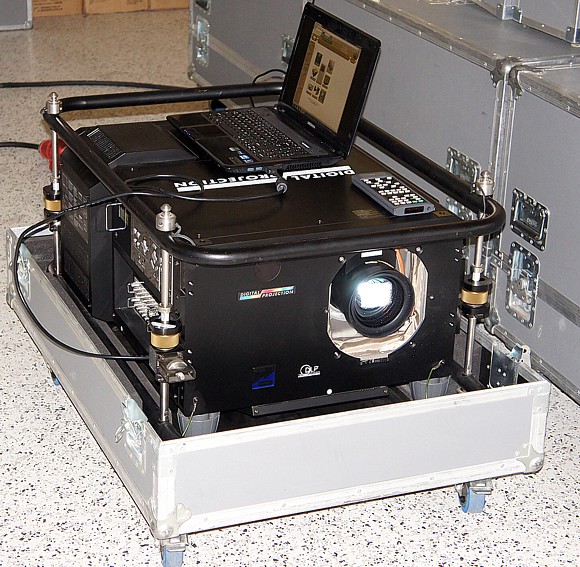 Digital Projection HIGHlite 12000Dsx+ Maße (LxHxB): 1010 x 532 x 690 mm, Gewicht 84 kg, mit Stacking-Frame).