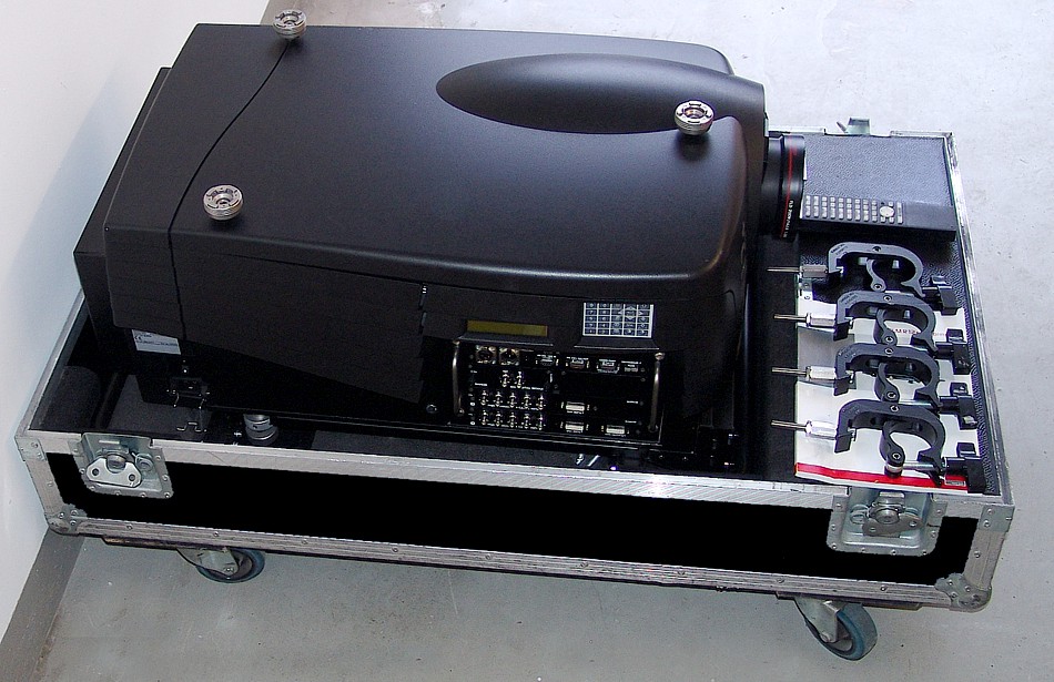 Die 3-Chip-Technologie ist vom Anschaffungspreis daher deutlich teurer als 1-Chip-Projektoren. Der hier angebotene Projektor Barco SLM R12+ Performer hatte einen Anschaffungspreis von ca. 80.000 Euro. Die Lightengine des Barco SLM R12+ Performer ist staubgeschützt. Im Gegensatz zu normalen Projektoren, die meist bis nur ca. 35° Umgebungstemperatur einsetzbar sind, kann dieser Barco auch noch bei 40° C betrieben werden. Im Sommer bei der Übertragung von WM Spielen usw. können ein paar Grad mehr schon sehr wichtig sein.