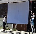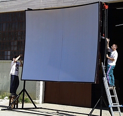 Ideale Bildwand für Einsätze bei höchster Umgebungshelligkeit, wie diese z.B. in einem "weißen" Festzelt bei Tageslicht, bei Messen oder bei Außenanwendungen im Biergarten und Präsentationen im Freien vorkommen kann . Nach der zum Einsatz kommenden Größe der Bildwand, muss die Projektorenleistung entsprechend bemessen werden.