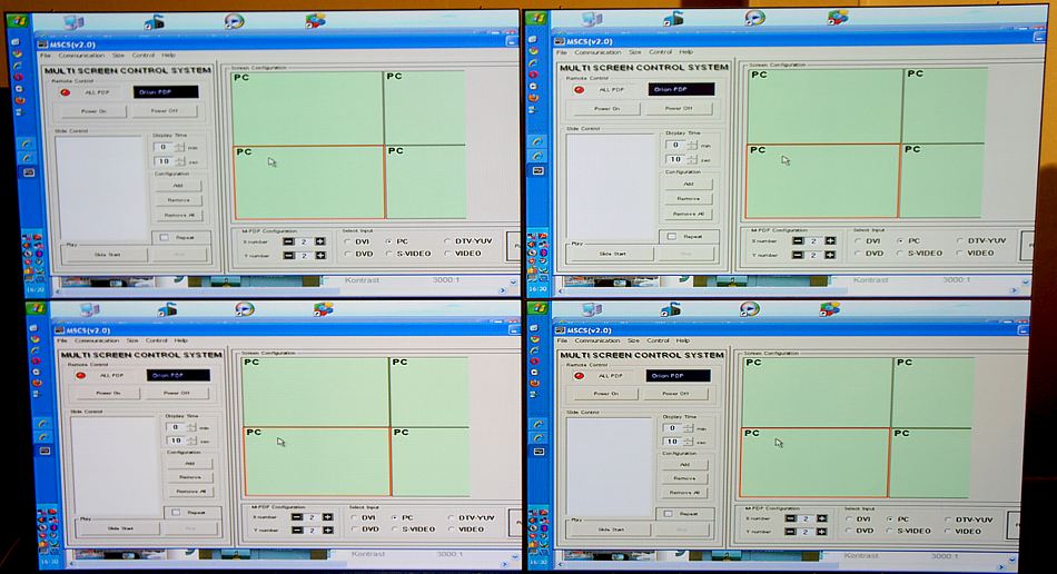 Diese speziellen Plasma werden als nahezu (2,5 mm umlaufender Rand pro Gerät) steglos bezeichnet. Die Plasmas werden speziell für Medienanwendungen produziert. Die Plasmas sind im Splitbetrieb kaskadierbar bis 5 x 5 Plasmas. Jeder Plasma kann auch einzeln betrieben werden. Die Plasmas werden hierzu in einen Alurahmen eingespannt. In jedem Plasma ist ein Splitprozessor integriert. Ein externer Splittprozessor ist also nicht notwendig. Die MIS-4210 werden über die RS232 Schnittstelle angesprochen mit PC oder Laptop. Mit einer mitgelieferten Software, die sich von selbst erklärt, können die Geräte alles individuell eingestellt werden, was Farbabgleich usw. angeht. Die Geräte sind für ca. 50.000 Betriebsstunden Panellebenserwartung ausgelegt.