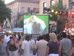 Ideale Bildwand für Einsätze bei höchster Umgebungshelligkeit, wie diese z.B. in einem "weißen" Festzelt bei Tageslicht, bei Messen oder bei Außenanwendungen im Biergarten und Präsentationen im Freien vorkommen kann . Nach der zum Einsatz kommenden Größe der Bildwand, muss die Projektorenleistung entsprechend bemessen werden.