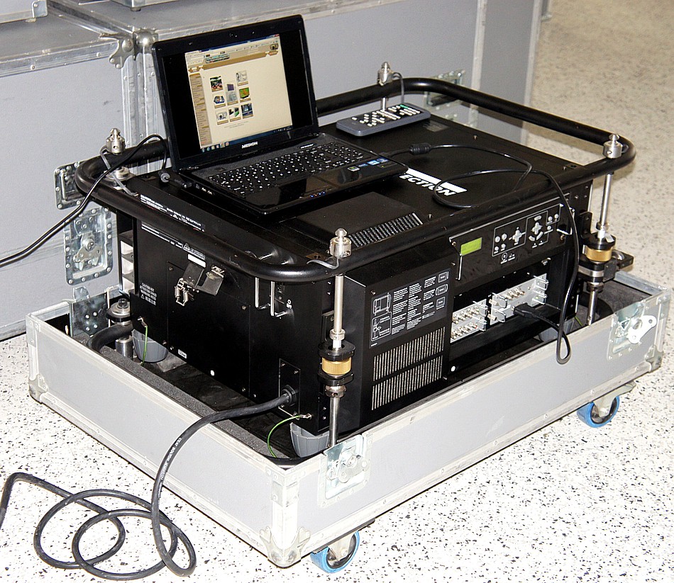 Digital Projection HIGHlite 12000Dsx+ Maße (LxHxB): 1010 x 532 x 690 mm, Gewicht 84 kg, mit Stacking-Frame).