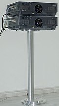 2 x Panasonic PT-D5600 DLP Projektoren zum Toppreis. Bedingt durch die horizontale und vertikale Shiftbarkeit der einzelnen Projektoren ist bei diesen professionellen Projektoren ein Stackbetrieb von 2 Geräten oder auch mehr möglich. Die PT-D 5600 und 5700 verfügen über mehrere interne Testbilder mit der in wenigen Minuten 2 gleiche Bilder übereinander gebracht werden können, um wie in diesem Fall aus 2 x 5000 Ansilumen 10.000 machen zu können, und das bei einem Einzelleistungsgewicht von nur 13 kg pro Gerät.