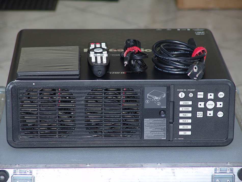 | Panasonic PT-DZ6710/L:Sehr hell mit 6.000 Ansi-Lumen bei nur 16,0 kg Gewicht |  | Der DMD Chip des Panasonic PT-DZ6710/L ist vollständig gekapselt, und somit gegen Staub und Dreck geschützt. |  | TOP: Dieser Panasonic PT-DZ6710/L ist der erste Projektor in dieser Klasse, der über eine flüssigkeitsgelgekühlte Lightengine verfügt. |  | Horizontaler und vertikaler Shift möglich. Motorzoom + Motorfokus. Wechseloptiken des Panasonic PT-DZ6710/L sehr einfach wechselbar |  | Kontrast mit 2000:1 |  | Höchste Betriebssicherheit durch Doppellampe. |  | Mit 45° maximaler Umgebungstemperatur „verträgt“ der Panasonic PT-DZ6710/L über 10% mehr Umgebungstemperatur als 90% aller Mitbewerberprodukte in diesem Segment |  | Wartungsfreie, wassergekühlte Lightengine, erstmals in diesem Segment |  | Komplett staubgeschütztes Lightenginedesign. D.h., das Projektionsergebnis verschlechtert sich nicht aufgrund von Dreck, Verstaubung usw. im Gerät |  | Motorisch, automatisch reinigendes Mikrofiltersystem durch elektrostatisches Bürstsystem |  | Edgeblending |  | Ca. 759Leuchtmittelstunden. 31835 Betriebsstunden |  | Insgesamt 4 Stk. vorhanden. |  | inkl. Standardoptik |  | 1 Jahr Gewährleistunng |