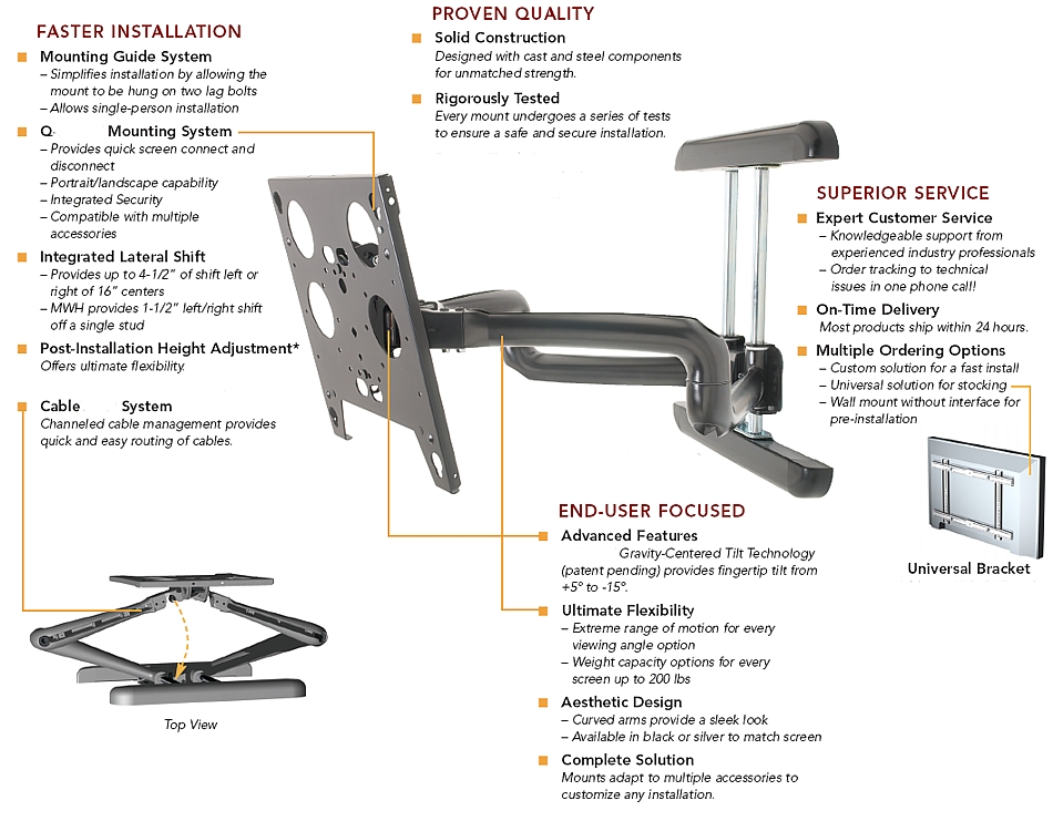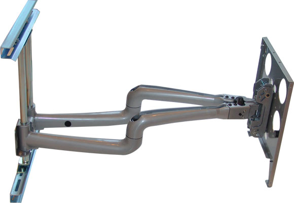 HINWEIS: Diese voll beweglichen Gelenkzughalterungen sind Direktimporte aus den USA vom weltweit größten Hersteller für Speziallösungen in diesem Bereich. Die Halterungen sind für schwere Industrie Monitor Applikationen konzipiert. Die Halterungen sind enorm leichgängig was die Beweglichkeit angeht auch unter hohen Belastungen. Diese Doppelarm-Gelenkzughalterungen sind nicht vergleichbar mit preiswerten Einarmlösungen. Billig Halterungen aus Fernost sind meist aus weichem, kohlenstoffarmen Stahl gefertigt, ohne spezielle Leichtlauflagereigenschaften in den Armgelenken. Die sogenannten Tilt (Neigungseigenschaften) bei Belastung sind bei diesen Halterungen oft sehr ausgeprägt. Preiswerte Halterungen bei schweren Flachbildgeräten sind von daher oft Fehlkäufe.