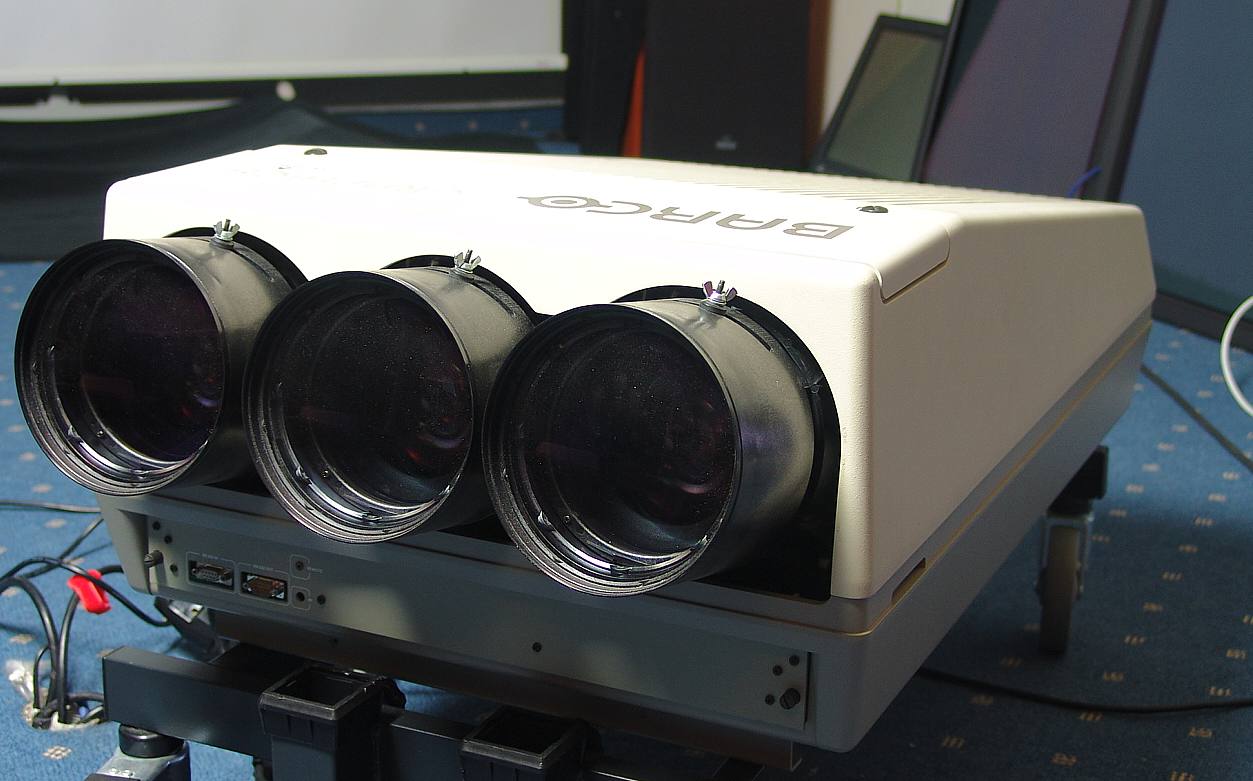 Bis 1500 x 1200 dot, Kontrast ca: Full on/off 15000:1, (bei Messung mit 0,05 lm) Helligkeit 825 Lumen Peak. Ehemaliger NP rund € 25.000. Konzipiert für Dauerbetrieb mit bis zu 50.000 Stunden und mehr. Gerät ist leise. Zum Einsatz kommen hier Sony CRT´s kombiniert mit hochauflösenden HD 8 Hybridoptiken, welche alleine schon ca. umgerechnet € 6000 Euro kosten.