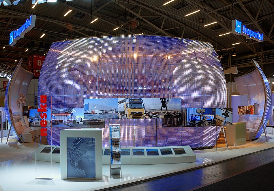 Daylight Outdoor LED System mit 40 mm Pitch. Für dauerhafte oder temporäre Installationen im Event oder Werbebereich. Dieses LED System ist der Gewinner des Innovationspreises 2007. Seit 2009 kann dieses System erstmals auch im Outdoorbereich eingesetzt werden. Schutzklasse IP65. Hier beispielsweise einmal eine Installation des Bayer Konzerns in Belgien. Die Informationen oder Werbebotschaften können optional bei einer solchen Installation auch von einem anderen weltweitem Standort erfolgen. So ist absolut höchste Aktualität garantiert. Die Lebensdauer der LED´s richtet sich nach der realen Belastung. D.h., wird permanent ein weißes Bild gezeigt so kann die mittlere Lebenserwartung bei ca. 50.000 Stunden - bei 50% Helligkeitsabfall - liegen. Videowerbematerial weist im Schnitt einen Helligkeitsanteil von ca. 40% auf. Die Lebensdauer erhöht sich damit im Schnitt um 60%.