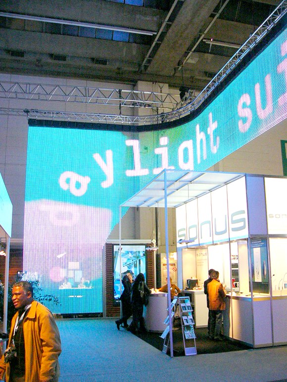 | Das mit Abstand flexibelste LED System auf dem Markt. In Deutschland entwickelt und produziert |  | Daylight System. Gleissend hell, tageslichttauglich |  | Doppelseitig nutzbar, d.h. die Rückseite des Systems ist ebenfalls als leuchtend bestellbar |  | Schnellste Montage, Minimales Transportvolumen |  | Frei formatierbares, steckbares System |  | Höhe von 96,5 cm bis 7,7 Meter in 8 Strängen steckbar. |  | Leistung pro Strang maximal 300 Watt |  | 32 Bit Farben, maximale Auflösung 1024 x 768 Pixel |  | Betriebstemperatur von 0-65°, B1Ansteuerbar per Glasfaser bis 15 Km. |