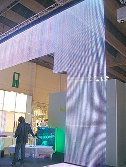 LED Flächen noch nicht gab, bietet nun dieser Daylight LED Curtain. Organische Formen, wie Wellen oder Rundungen, sind mit den neuartigen LED-Strängen problemlos realisierbar. Durch ein revolutionäres, ausgeklügeltes Befestigungs-/Stecksystem lassen sich die LED Pixel so anpassen, dass auch in der horizontalen Achse freie Formenbildungen möglich sind. Große Lichtflächen können mit dem Dayliht LED Curtain so äußerst flexibel