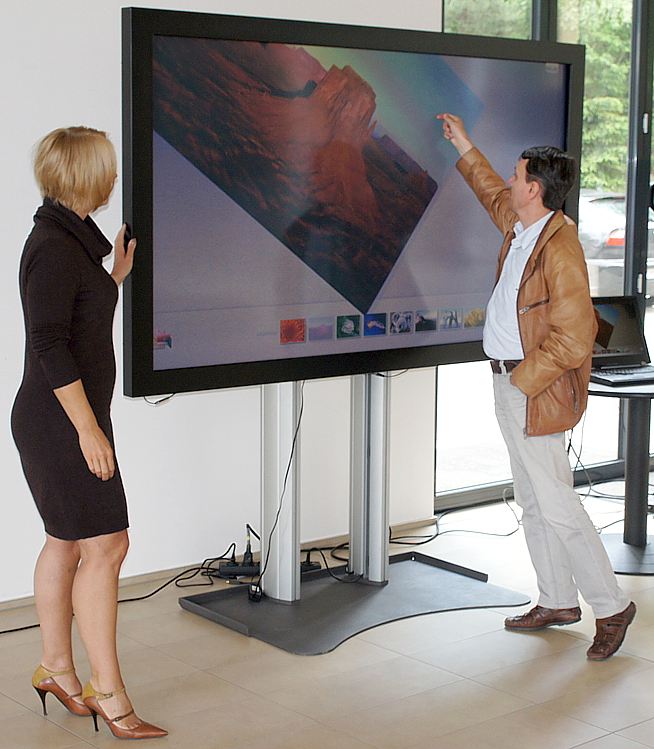 • Durch eine sichtbare Bildfläche von 189 cm x 106 cm prädestiniert zur publikumswirksamen Darstellung von Personen in Lebensgröße. Das Display kann hierfür auch vertikal betrieben werden.