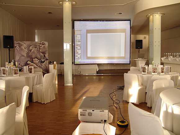 3,6 x 2,8 m MW Fast Fold Bildwand für Aufprojektion. 1,2 Gain Lichtverstärkung