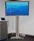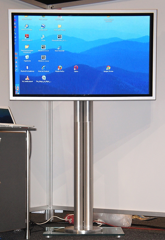 | Flicker- und flimmerfreie quasi 100 Hz Ansteuerung |  | Beste Bildqualität bei HDTV durch hohe 3,14 Mio. Sub-Pixel Auflösung |  | Bild in Bild prozessing PiP, PaP, PoP |  | Gerät komplett mit dem großen professionellen Studiovideoboard |  | Dauerbetrieb auf Messen möglich |  | Bildschirm teilbar z.B. eine Seite mit PC-Darstellung, die andere Seite mit Video-Darstellung |  | Höchste PD RG 5 Zertifizierung |  | Hochkantbetrieb möglich |