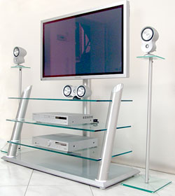 Die gesamte Optik wirkt mit dem Flachbildschirm sehr edel. Die Alu tubes sind aufwendig nach dem Transrotationsverfahren